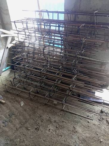 As of the 13th of May - 18th of May, the raising of steel reinforcements for support of the third floor is at 95% completion, the blockwork for the block walls partitions is at 60% completion and the iron bending works for the lintel steel reinforcement is at 30% completion.