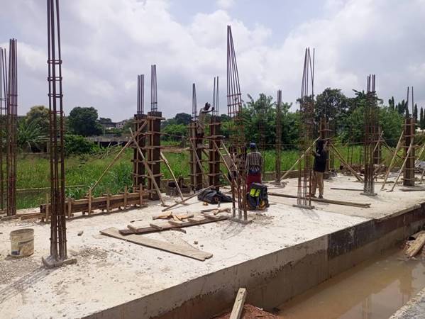 Update: The casting of the reinforced concrete columns that will support the first-floor slab has been completed, the formwork of floor beams and the slab is ongoing. The iron bending works of the steel reinforcements have commenced. The placement of steel reinforcements for the floor beams has also commenced.