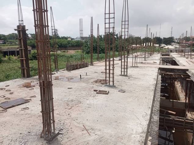 Update: The raising of the steel reinforcements for the reinforced concrete columns to support the second-floor slab.